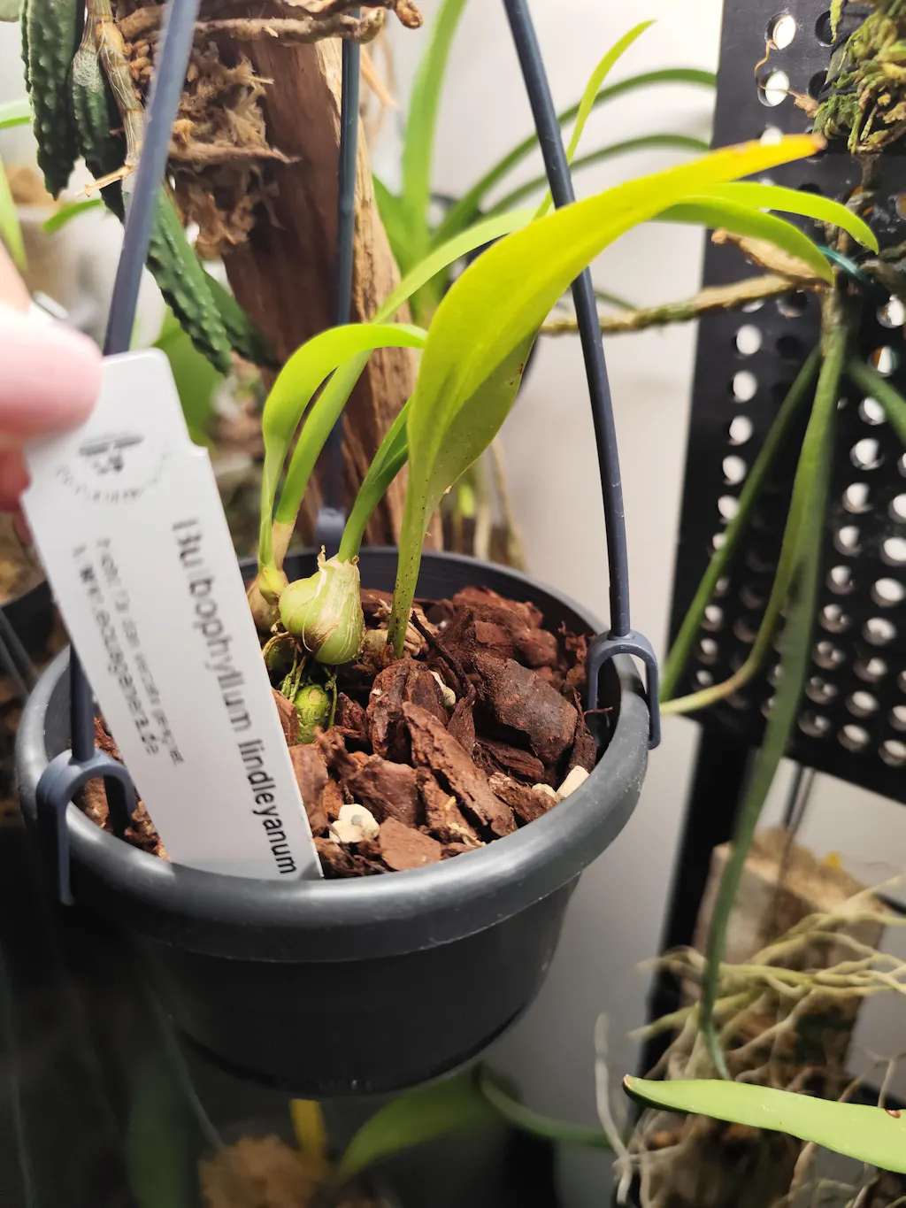 Für eine erfolgreiche Kultur sind konstant hohe Luftfeuchtigkeit, regelmäßige Wassergaben ohne Staunässe sowie sehr gute Luftzirkulation entscheidend. Die Art eignet sich besonders für die Aufbindung auf Rinde oder für sehr luftdurchlässige Substrate. Längere Trockenphasen sollten vermieden werden.