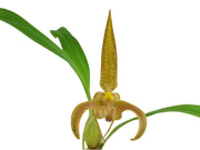 Bulbophyllum lobbii ist eine faszinierende Orchidee mit kräftigen, rundlichen Pseudobulben und nur einem einzigen, stabilen Blatt pro Trieb. Die Pflanze wächst bevorzugt epiphytisch in feuchten, tropischen Wäldern und bildet elegante, leicht gebogene Blütenstände mit einer auffälligen Einzelblüte.