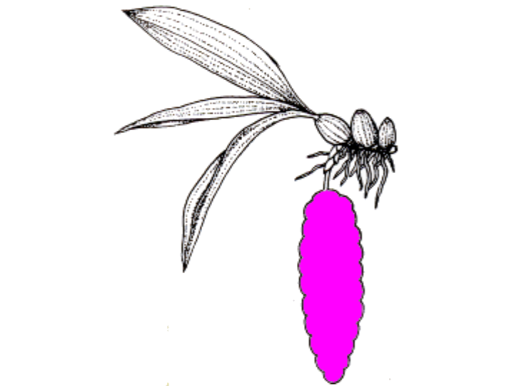 Anmerkungen: Acineta sulcata sollte im Ampeltopf oder Körbchen kultiviert werden, die Blütenstandsstiele ebtspringen seitlich oder direkt nach unten. Die Blüten sind wachsartig und duften nach Vanille. Sie können 3-4 Wochen blühen.